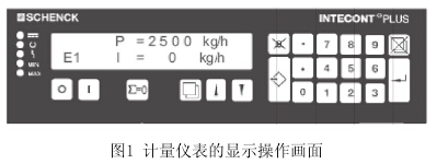DEL/DEM型定量給料機是一種對散粒狀、塊狀物料連續(xù)輸送的重量式給料設備,它適用于對物料實施動態(tài)稱重和給料控制的場合。DEL/DEM型定量給料機能夠按照預定的程序,通過調(diào)節(jié)皮帶速度,自動調(diào)節(jié)物料流量,從而保證以恒定的期望給料流量連續(xù)不斷地輸送物料。給料過程中能自動計量流量值和累積輸送的物料總量。顯示儀表選用德國申克儀表,運行時儀表顯示的主要字符如圖1。