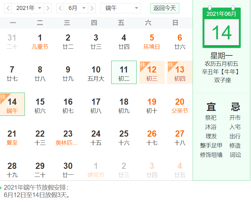 端午節(jié)將至,根據(jù)國務(wù)院節(jié)假日放假規(guī)定,并考慮公司的實際情況,公司將2021年端午放假做以下安排,具體明細如下: